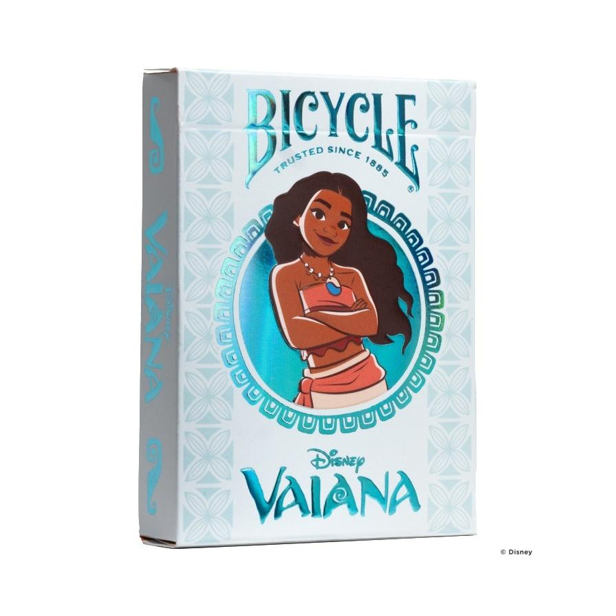 Wyrusz na kolejny wieczór gier i przeżyj ekscytujące przygody w Te Fiti z kartami do gry Disney Moana od Bicycle(R)! Lśniące, niebieskie opakowanie foliowe zawiera stylowe, spersonalizowane karty z Moaną, Mauim oraz przekąskami z łodzi: kurczakiem Hei Hei i świnką Puą! CECHY: PIĘKNE OPAKOWANIE: Tłoczone i foliowane z nadrukowanymi niespodziankami w środku. PERSONALIZOWANY TYŁ: Z charakterystycznym kajakiem Moany na tle oceanicznego błękitu.