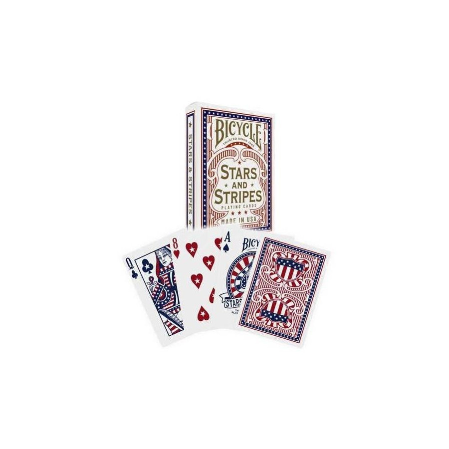 Okaż swoje wsparcie dzięki talii Bicycle Stars and Stripes. Dzięki wzorowi rewersu kart inspirowanemu amerykańską flagą oraz kartom figurowym w charakterystycznych dla USA kolorach czerwonym, białym i niebieskim będziesz gotowy na kolejną noc gier u Wuja Sama.