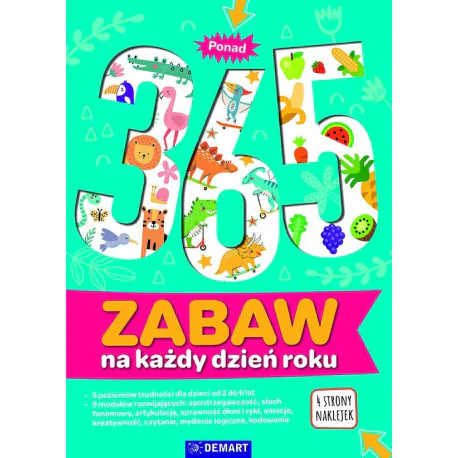 Obszerna książka z różnorodnymi zadaniami podzielona na 5 stopni trudności (od 2-latka do 6-latka) oznaczonych serduszkami i na 9 modułów wspierających rozwój: spostrzegawczości, słuchu fonemowego, artykulacji, sprawności dłoni i ręki, emocji, kreatywności, czytania, myślenia logicznego, kodowania