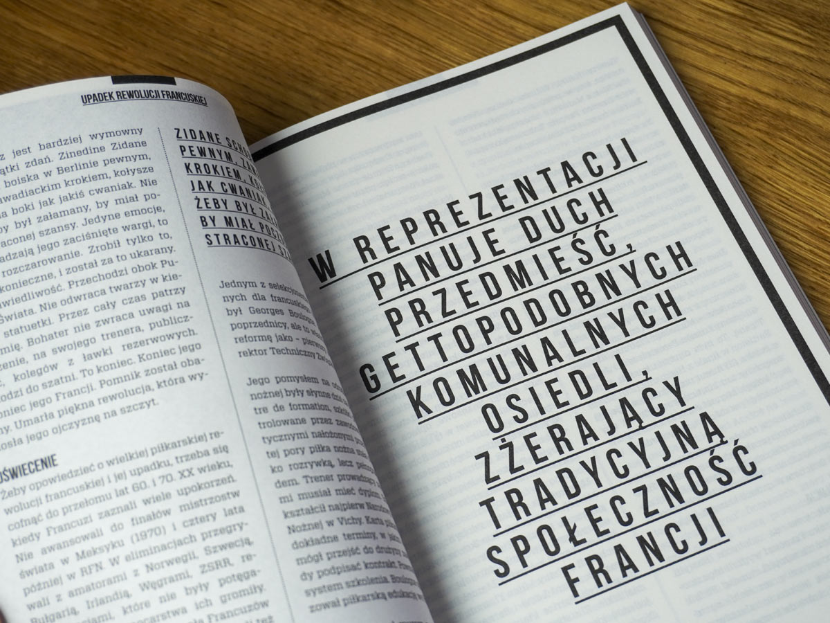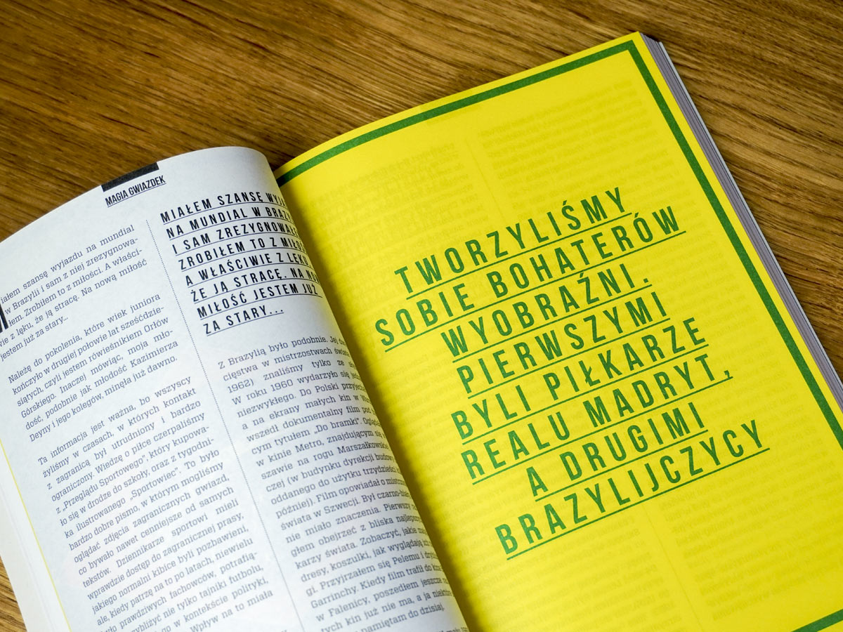 W pierwszym numerze, który pierwotnie ukazał się w 2014 roku, zajęliśmy się mistrzostwami świata, czyli turniejem piłkarskim, który wykracza jednak daleko poza zwykłe sportowe wydarzenie. To najbardziej fascynujące, romantyczne i mitotwórcze zjawisko w sporcie. Jeden z ostatnich magicznych elementów, który ostał się w nowoczesnej, skomercjalizowanej do granic możliwości rzeczywistości piłkarskiej.