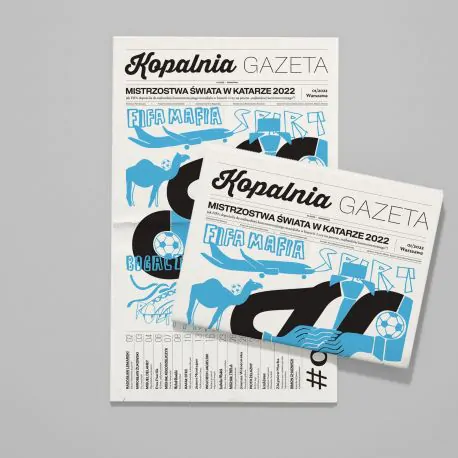 Kopalnia – gazeta. Nowy projekt w rodzinie Kopalni. Chcieliśmy stworzyć coś szybszego, bardziej zahaczonego w „tu i teraz”, tańszego, ale jednocześnie wciąż stawiającego jakościowe dziennikarstwo na pierwszym miejscu. Powstała idea, by zabawić się formą i przygotować specjalne wydanie poświęcone Katarowi i najbardziej kontrowersyjnemu mundialowi w historii, jako olbrzymią gazetę. W formacie starej „Rzeczpospolitej” czy „Tygodnika Powszechneg”o. Obok znanych doskonale z Kopalni długich form znajdziecie tu – jak przystało na gazetę – opinie i felietony, a także nawet kącik rozrywkowy.