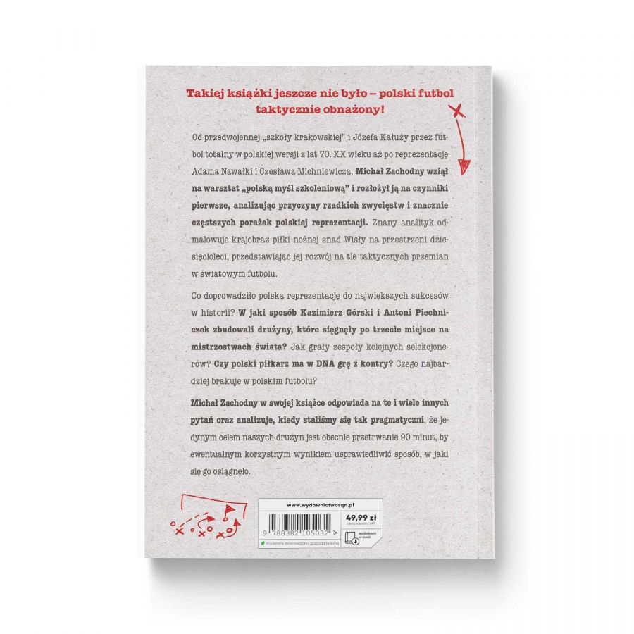 Od przedwojennej „szkoły krakowskiej” i Józefa Kałuży przez futbol totalny w polskiej wersji z lat 70. XX wieku aż po reprezentację Adama Nawałki i Czesława Michniewicza. Michał Zachodny wziął na warsztat „polską myśl szkoleniową” i rozłożył ją na czynniki pierwsze, analizując przyczyny rzadkich zwycięstw i znacznie częstszych porażek polskiej reprezentacji. Znany analityk odmalowuje krajobraz piłki nożnej znad Wisły na przestrzeni dziesięcioleci, przedstawiając jej rozwój na tle taktycznych przemian w światowym futbolu.