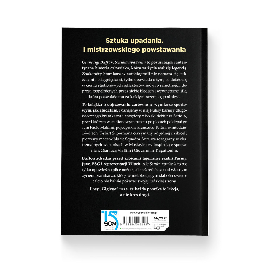Gianluigi Buffon. Sztuka upadania to poruszająca i autentyczna historia człowieka, który za życia stał się legendą. Znakomity bramkarz w autobiografii nie napawa się sukcesami i osiągnięciami, tylko opowiada o tym, co działo się w cieniu stadionowych reflektorów, mówi o samotności, depresji, popełnionych przez siebie błędach i wewnętrznej sile, która pozwalała mu za każdym razem się podnieść.