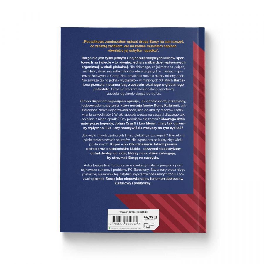 Jak wiele innych czołowych firm o globalnym zasięgu FC Barcelona pilnie strzeże swoich sekretów. Nie wpuszcza za kulisy zbyt wielu postronnych. Kuper – po kilkudziesięciu latach pisania o piłce oraz o katalońskim klubie – otrzymał niespotykany dotąd dostęp do ludzi, którzy na co dzień zabiegają, by utrzymać Barçę na szczycie.