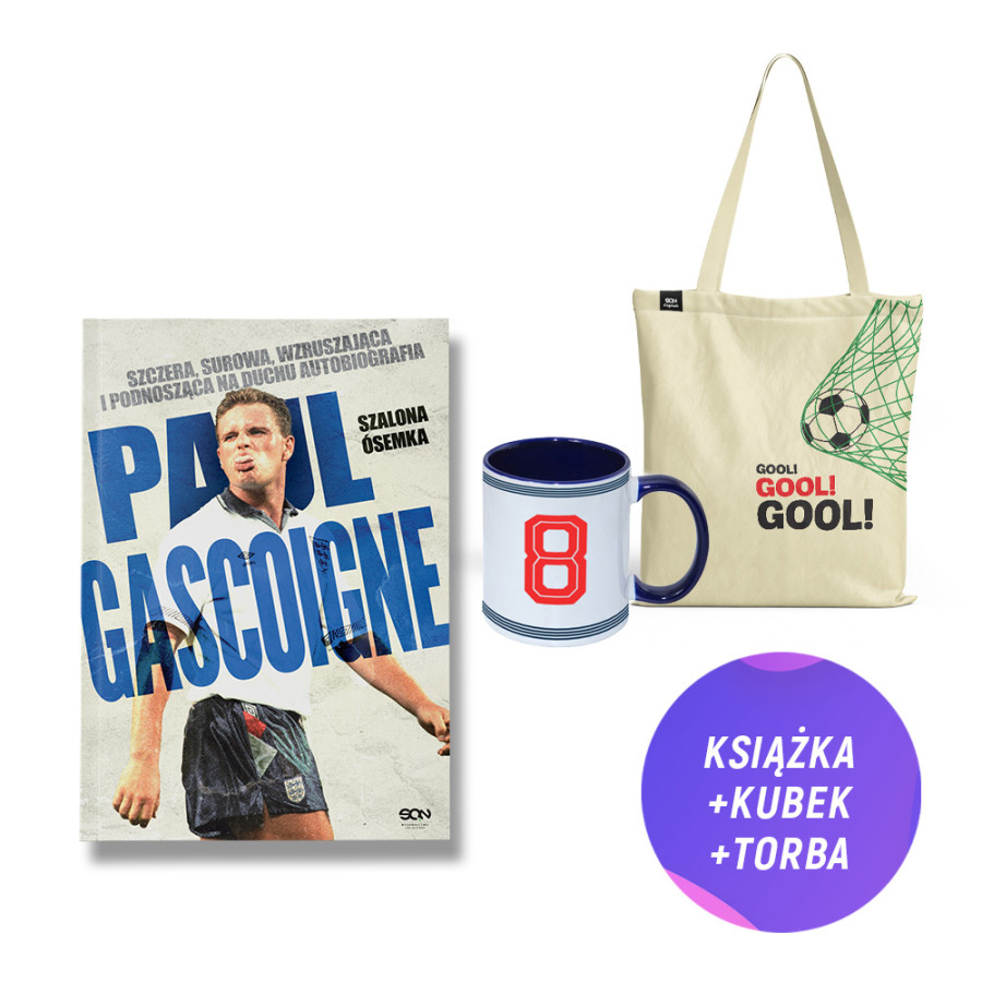 (Wysyłka ok. 23.03.) Paul Gascoigne (książka + torba bawełniana Gool! + kubek Gascoigne)