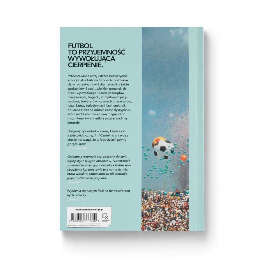 Eduardo Galeano zachwyca. Jego historia piłki nożnej jest niepodobna do żadnej innej: poetycka, liryczna i osobista, a przecież także polityczna i społeczna. Z fragmentów i szczególików Urugwajczyk tka opowieść o uczuciach. Piłka nożna według Galeano to nie tylko wzniosłe i cudowne chwile, ale także magia i przesądy, tragedie i nędza ludzkiego losu. Ten jeden z ważniejszych pisarzy politycznych Ameryki Południowej stworzył piękną książkę o uroku futbolu.