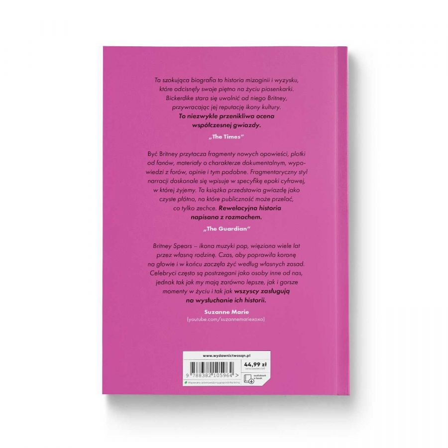 Współczesna analiza życia Britney Spears oparta na zbiorze opowieści, ciekawostek, anegdot i relacji fanów. Jennifer Otter Bickerdike z ogromną wnikliwością uchwyciła drogę Britney od bycia dziewczyną z sąsiedztwa aż po stawanie się ikoną popkultury. To również obraz przemysłu muzycznego i związanych z nim niebezpieczeństw, które znacznie wpłynęły na życie piosenkarki.