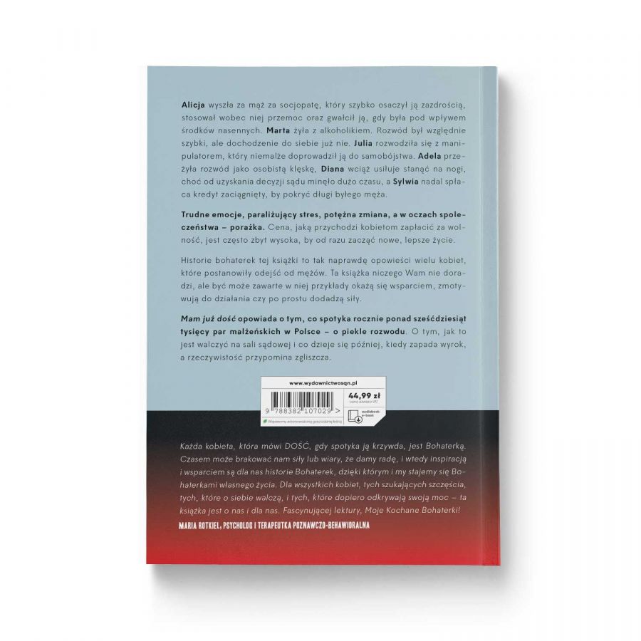Mam już dość opowiada o tym, co spotyka rocznie ponad sześćdziesiąt tysięcy par małżeńskich w Polsce – o piekle rozwodu. O tym, jak to jest walczyć na sali sądowej, i co dzieje się później, kiedy zapada wyrok, a rzeczywistość przypomina zgliszcza.