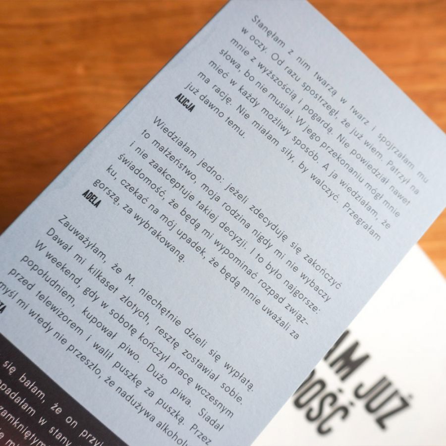 Alicja wyszła za mąż za socjopatę, który szybko osaczył ją zazdrością, stosował wobec niej przemoc oraz gwałcił ją, gdy była pod wpływem środków nasennych. Marta żyła z alkoholikiem. Rozwód był względnie szybki, ale dochodzenie do siebie już nie. Julia rozwodziła się z manipulatorem, który niemalże doprowadził ją do samobójstwa. Adela przeżyła rozwód jako osobistą klęskę, Diana wciąż usiłuje stanąć na nogi, choć od uzyskania decyzji sądu minęło dużo czasu, a Sylwia nadal spłaca kredyt zaciągnięty, by pokryć długi byłego męża.