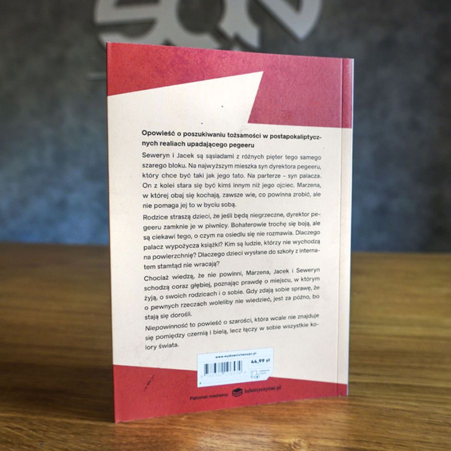 „Niepowinność” to druga książka Pawła Radziszewskiego, gatunkowo zaliczana do literatury pięknej z nutką realizmu magicznego. I jest taka jak jej okładka – prosta, zagadkowa, opowiadająca o szaroburej codzienności życia bez perspektyw na małym PRL-owskim osiedlu, w której nawet to co powinno ją osłodzić, wcale nie jest tak naprawdę kolorowe, miłe i przyjemne. Jednak, mimo niewesołych tematów, książkę czyta się naprawdę dobrze – pisana jest prostym, treściwym językiem, który wydaje się całkiem zwyczajny, a jednak niesie w sobie głębię. Jest to powieść warstwowa, którą można odczytywać na kilka różnych sposobów, ale przede wszystkim po prostu dosłownie i metaforycznie. Dosłownie to opowieść o dorastaniu trójki dzieciaków wychowujących się w małej wiosce, w pegeerze, którym przyglądamy się na przestrzeni kilkunastu lat. Metaforycznie to droga do poszukiwania własnego ‘ja’, zastanowienia nad tym, kim tak naprawdę każdy z nas jest i czy naprawdę musi sprostać wszystkim tym z góry narzuconym oczekiwaniom. To opowieść o podziałach społeczeństwa, które sami sobie narzucamy mamiąc się usprawiedliwieniami mającymi na celu tylko zagłuszenie wyrzutów sumienia w trosce o spokojne życie za wszelką cenę. Lektura inna, ciekawa, łatwa do przyswojenia, a jednak niosąca w sobie wiele wartościowych treści. Warto się z nią zapoznać.