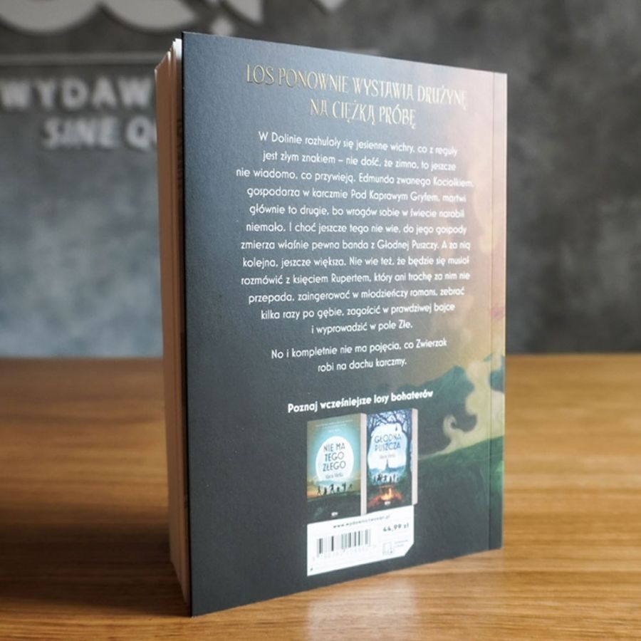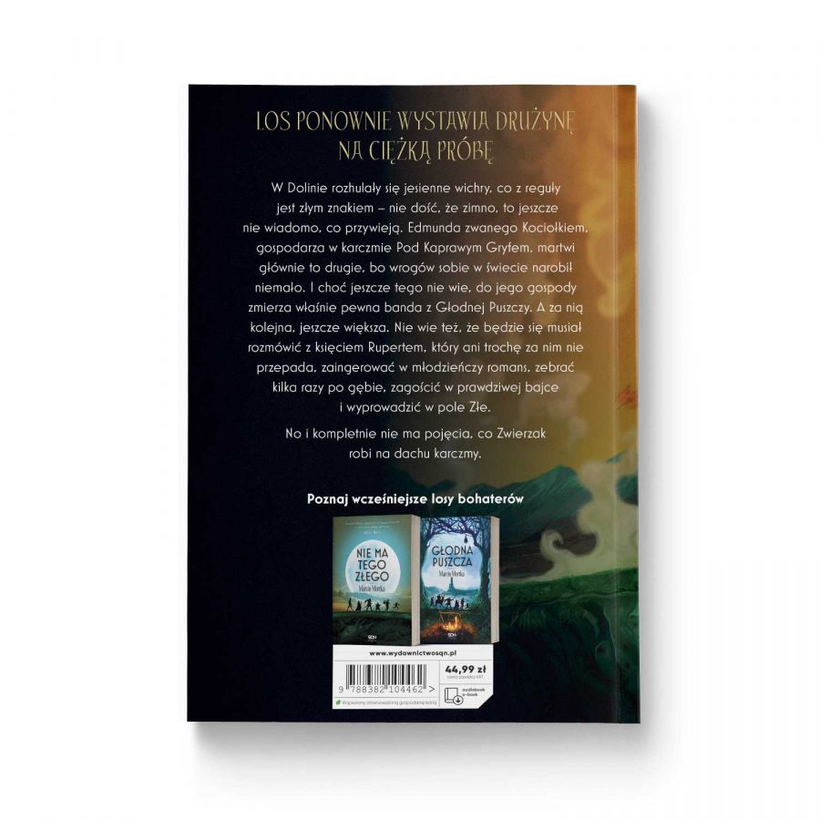 W Dolinie rozhulały się jesienne wichry, co z reguły jest złym znakiem – nie dość, że zimno, to jeszcze nie wiadomo, co przywieją. Edmunda zwanego Kociołkiem, gospodarza w karczmie Pod Kaprawym Gryfem, martwi głównie to drugie, bo wrogów sobie w świecie narobił niemało. I choć jeszcze tego nie wie, do jego gospody zmierza właśnie pewna banda z Głodnej Puszczy. A za nią kolejna, jeszcze większa. Nie wie też, że będzie się musiał rozmówić z księciem Rupertem, który ani trochę za nim nie przepada, zaingerować w młodzieńczy romans, zebrać kilka razy po gębie, zagościć w prawdziwej bajce i wyprowadzić w pole Złe.