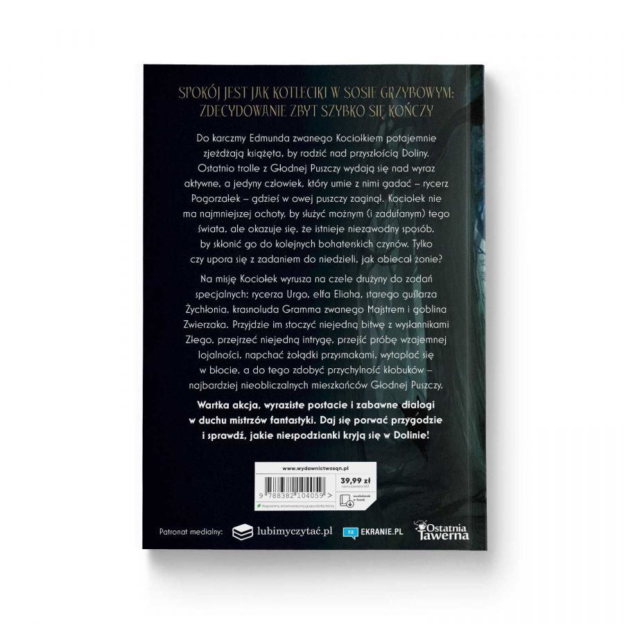 Do karczmy Edmunda zwanego Kociołkiem potajemnie zjeżdżają książęta, by radzić nad przyszłością Doliny. Ostatnio trolle z Głodnej Puszczy wydają się nad wyraz aktywne, a jedyny człowiek, który umie z nimi gadać – rycerz Pogorzałek – gdzieś w owej puszczy zaginął. Kociołek nie ma najmniejszej ochoty, by służyć możnym (i zadufanym) tego świata, ale okazuje się, że istnieje niezawodny sposób, by skłonić go do kolejnych bohaterskich czynów. Tylko czy upora się z zadaniem do niedzieli, jak obiecał żonie?