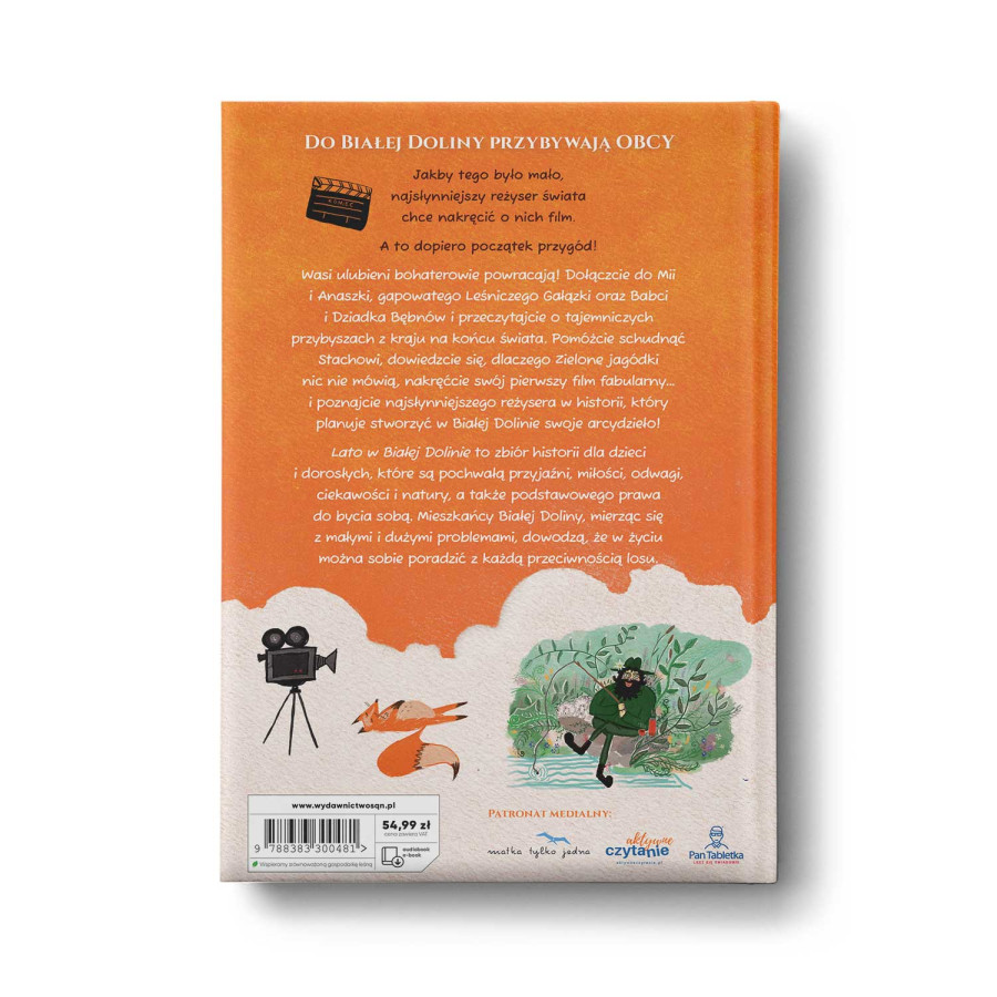 Wasi ulubieni bohaterowie powracają! Dołączcie do Mii i Anaszki, gapowatego Leśniczego Gałązki oraz Babci i Dziadka Bębnów i przeczytajcie o tajemniczych przybyszach z kraju na końcu świata. Pomóżcie schudnąć Stachowi, dowiedzcie się, dlaczego zielone jagódki nic nie mówią, nakręćcie swój pierwszy film fabularny… i poznajcie najsłynniejszego reżysera w historii, który planuje stworzyć w Białej Dolinie swoje arcydzieło!