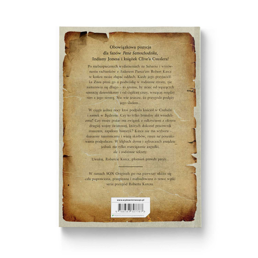 Po dramatycznych przeżyciach na Saharze Robert Karcz liczył na chwilę spokoju. Kiedy jego przyjaciółka Zuza prosi go o przysługę i wspólny wyjazd w jej rodzinne strony, postanawia skorzystać z okazji, by odpocząć od medialnego szumu i trudnych relacji rodzinnych. Jednak spokój nie trwa długo – seria podpaleń w Czeladzi i Będzinie wywraca plany Karcza do góry nogami. Czy te akty wandalizmu kryją w sobie więcej, niż się wydaje? Trop prowadzi w mroczne zakamarki historii II wojny światowej, odkrywane przez pasjonata historii i pracownika muzeum. Karcz, uwikłany w kolejną zagadkę, wyrusza na poszukiwania tajemniczego podpalacza, a to, co odkryje, zaskoczy nawet jego.