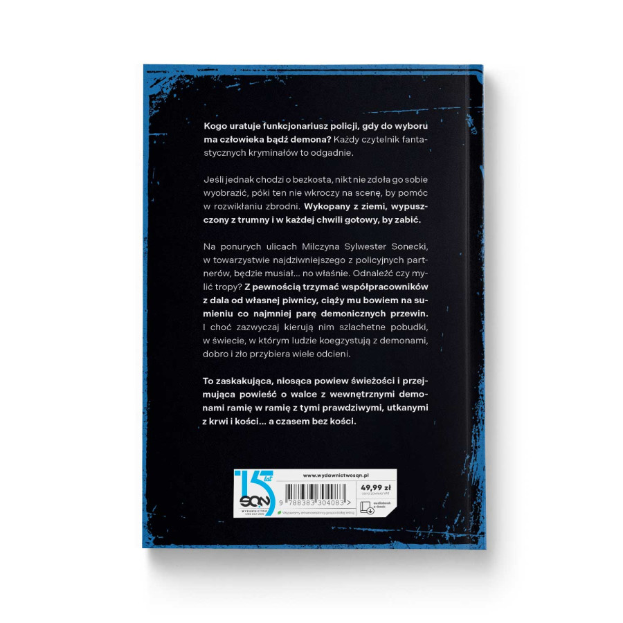 Na ponurych ulicach Milczyna Sylwester Sonecki, w towarzystwie najdziwniejszego z policyjnych partnerów, będzie musiał… no właśnie. Odnaleźć czy mylić tropy? Z pewnością trzymać współpracowników z dala od własnej piwnicy, ciąży mu bowiem na sumieniu co najmniej parę demonicznych przewin. I choć zazwyczaj kierują nim szlachetne pobudki, w świecie, w którym ludzie koegzystują z demonami, dobro i zło przybiera wiele odcieni.