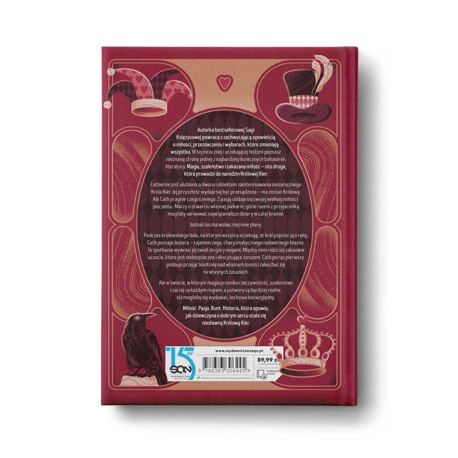Autorka bestsellerowej Sagi Księżycowej powraca z zachwycającą opowieścią o miłości, przeznaczeniu i wyborach, które zmieniają wszystko. W tej mrocznej i urzekającej historii poznasz nieznaną stronę jednej z najbardziej ikonicznych bohaterek literatury. Magia, szaleństwo i zakazana miłość — oto droga, która prowadzi do narodzin Królowej Kier.