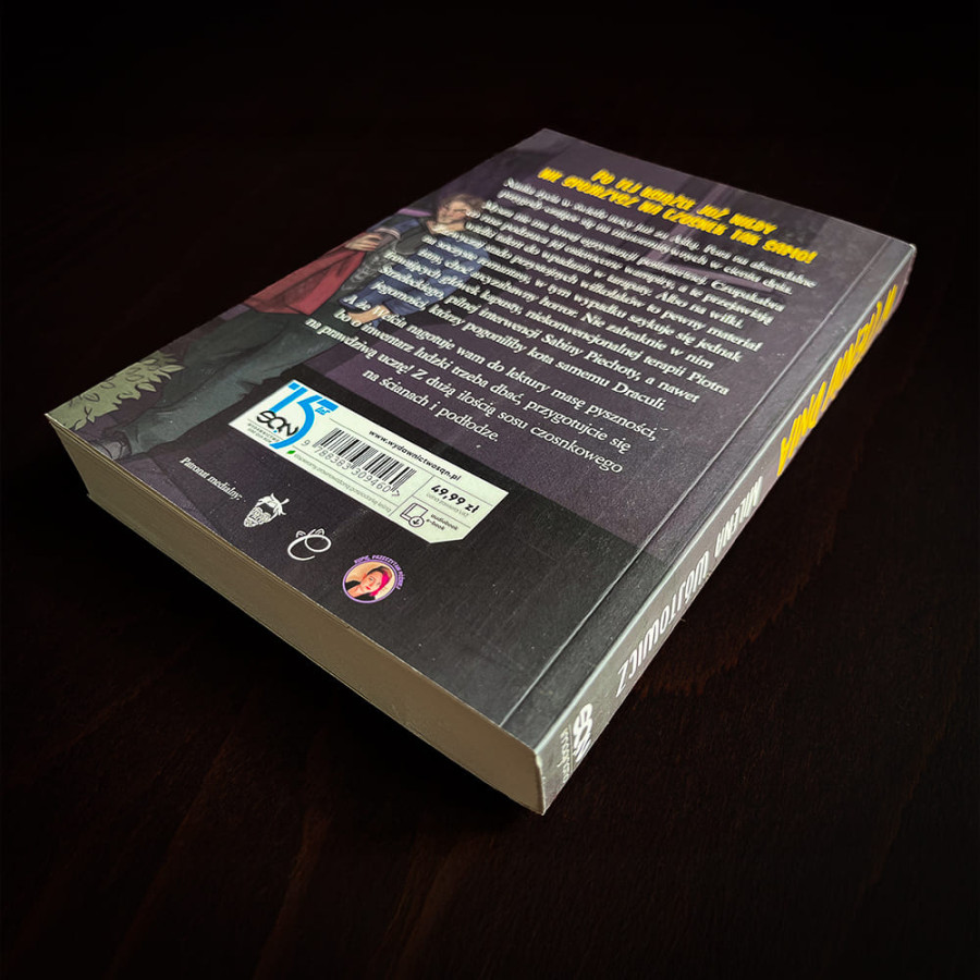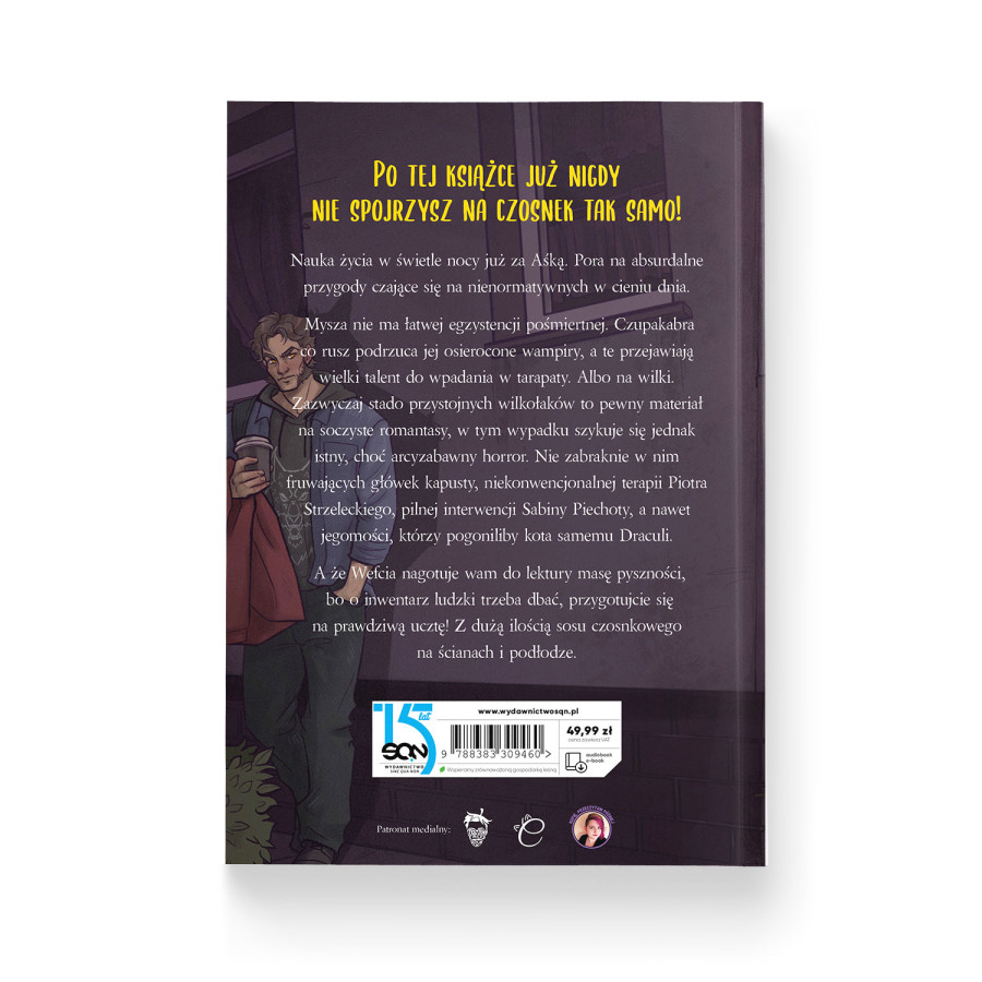Czujecie to? Lekki swąd mokrego psa, aromat bojowego kimchi, od którego kręci w nosie, niezbyt subtelna nuta czosnku... Tak, Aśka Myszkowska powraca, a z nią wampiryczne mediacje, całkiem przyziemne poszukiwanie pracy i próby zażegnania odwiecznego konfliktu międzygatunkowego. Nikt przecież nie mówił, że bycie wampirem jest proste! Uważajcie jednak – gwarantowane, że zaczniecie szczerzyć kły w czasie lektury, a wtedy może nawiedzić Was Sabinka z zestawem kwestionariuszy pod pachą!