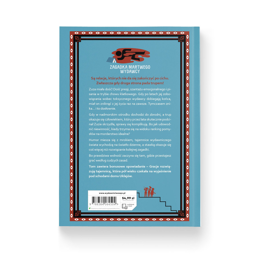 Powrót ukochanych bohaterek i literackie kulisy w krzywym zwierciadle. „Zagadka martwego wydawcy” to błyskotliwa komedia kryminalna, w której Aneta Jadowska z właściwym sobie humorem obnaża absurdy świata wydawniczego. Wraz z niezawodnymi Gracjami oraz nieco zbyt zmęczonym życiem sierżantem Straszewiczem, czytelnicy ruszają na śledztwo, w którym tropy prowadzą przez nadmorskie plaże, stare sekrety i rankingi najskuteczniejszych narzędzi zbrodni.