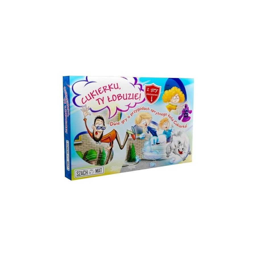 Gra "Cukierku, Ty łobuzie!" opiera się na serii książek dla dzieci Waldemara Cichonia, z której pierwsza część o takim właśnie tytule znajduje się w kanonie lektur szkolnych dla klas IIII. Uwielbiana przez dzieci i dorosłych zabawna seria o psotach i figlach Cukierka i jego wcale nie mniejzabawnej rodzinki wreszcie pojawia się w formie gry planszowej! Cukierek od samego początku stał się dla dzieci niezwykle bliski i teraz w końcu same będą mogły zmierzyć się z ich ukochanympupilem! W pudełku znajdują się dwie gry, zapełnione barwnymi obrazkami, które przedstawiają scenki z życia kota. Są to znane jużilustracje z książki. Dzięki prostym zasadomgry można z łatwością nauczyć gry swoich przyjaciół i zagrać wspólnie z tymi, którzy jakimś cudem jeszcze dotąd go nie poznali! Dodatkowo, mnóstwo zabawnych żetonów oraz spersonalizowana, oryginalna kostka z rysunkiem kota i człowieka sprawia, że chce się grać na okrągło!