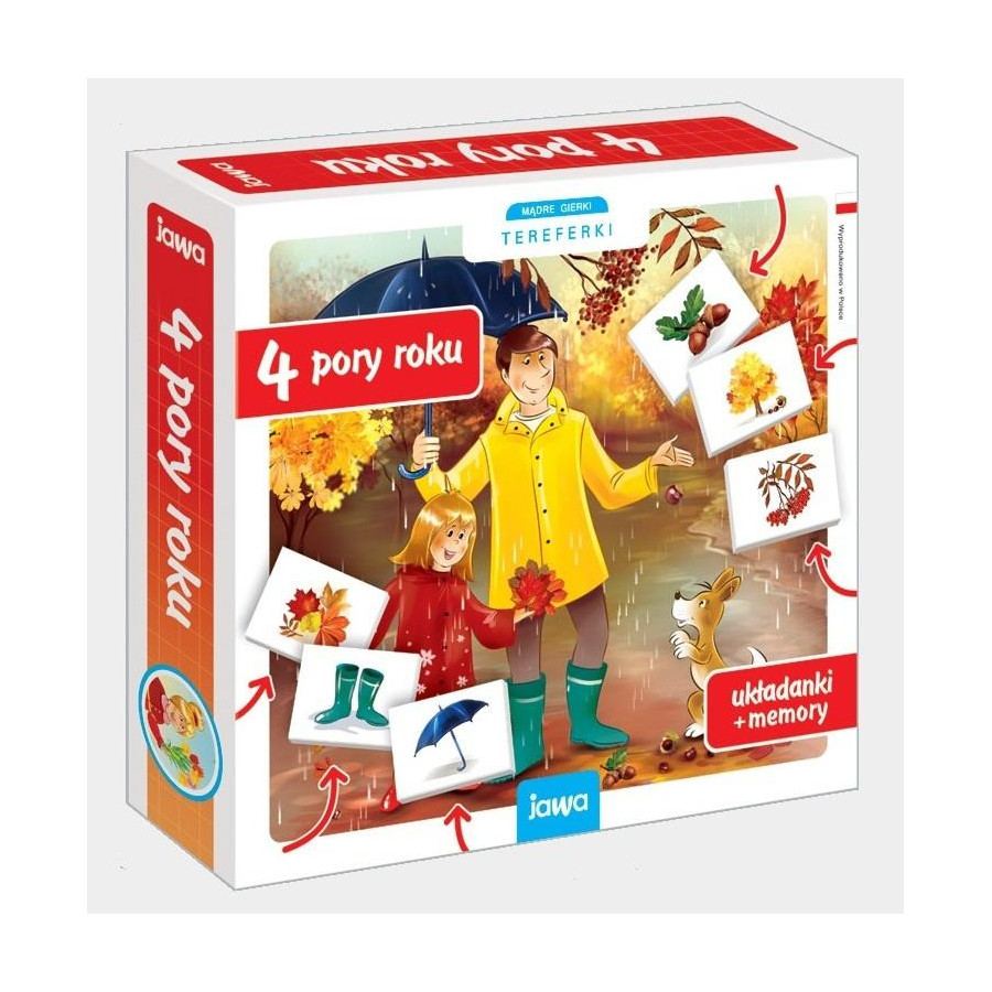 Układanka zawiera 4 plansze ? scenki związane z porami roku. Znajdź 6 żetonów z obrazkami, które kojarzą się ze scenką przedstawioną na wylosowanej planszy. Zwycięża gracz, który pierwszy odnajdzie 6 odpowiednich żetonów. Inne propozycje zabawy znajdują się w dołączonej instrukcji.