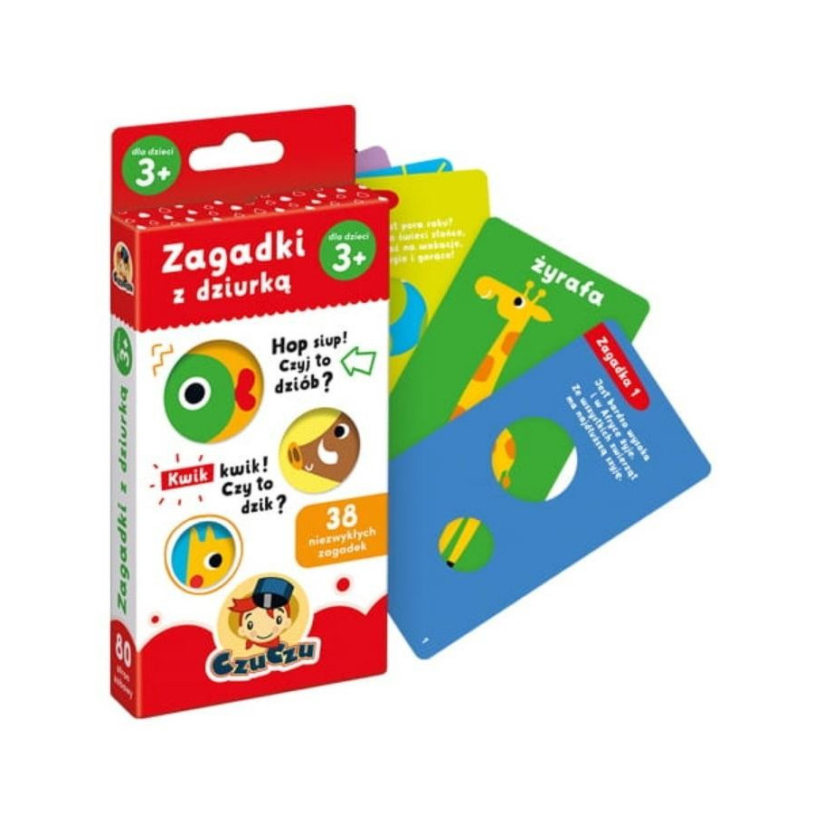 Bawcie się i uczcie jednocześnie! Przeczytaj dziecku wierszyk. Wspólnie sprawdźcie odpowiedź na następnej stronie. Zobaczcie, że duże dziurki w zabawny sposób ułatwiają rozwiązanie zadania. Taka zabawa to doskonała lekcja nowych słów i wiadomości. Następnie, gdy wszystkie odpowiedzi będą już dobrze znane, wymyślajcie własne pytania inspirowane ilustracjami. Co więcej, możecie zamieniać się rolami! Zagadki sprawdzą się jako książeczka obrazkowa. Uczcie się nowych słów, utrwalajcie wiadomości i dajcie się ponieść wyobraźni. Książeczki z edukacyjnej serii sprawdzają się w domu, na spacerze i w podróży.
