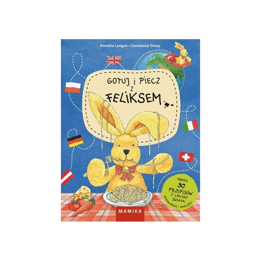 Gotuj i piecz z Feliksem kulinarna podróż dookoła świata! Pluszowy zając Feliks, który przemierzył niemal każdy zakątek globu, dzieli się w tej książce przepisami na ponad 90 pysznych dań inspirowanych kuchniami świata. Dzięki praktycznym wskazówkom, sprytnym trikom oraz ilustrowanym instrukcjom krok po kroku, przygotowanie potraw stanie się dziecinnie proste - nawet dla najmłodszych kucharzy. Od babcinych naleśników z jabłkami, przez soczysty chleb marchewkowy, włoską pizzę, aż po egzotyczną ananasową patelnię z Malezji - w tej książce każdy znajdzie coś dla siebie! Dodatkową atrakcją są urocze detale, takie jak flagi krajów przy przepisach oraz porady dotyczące miar i składników. Każdy przepis to nie tylko smakowite danie, ale także historia - zaproszenie do odkrywania różnorodności kultur i tradycji kulinarnych.