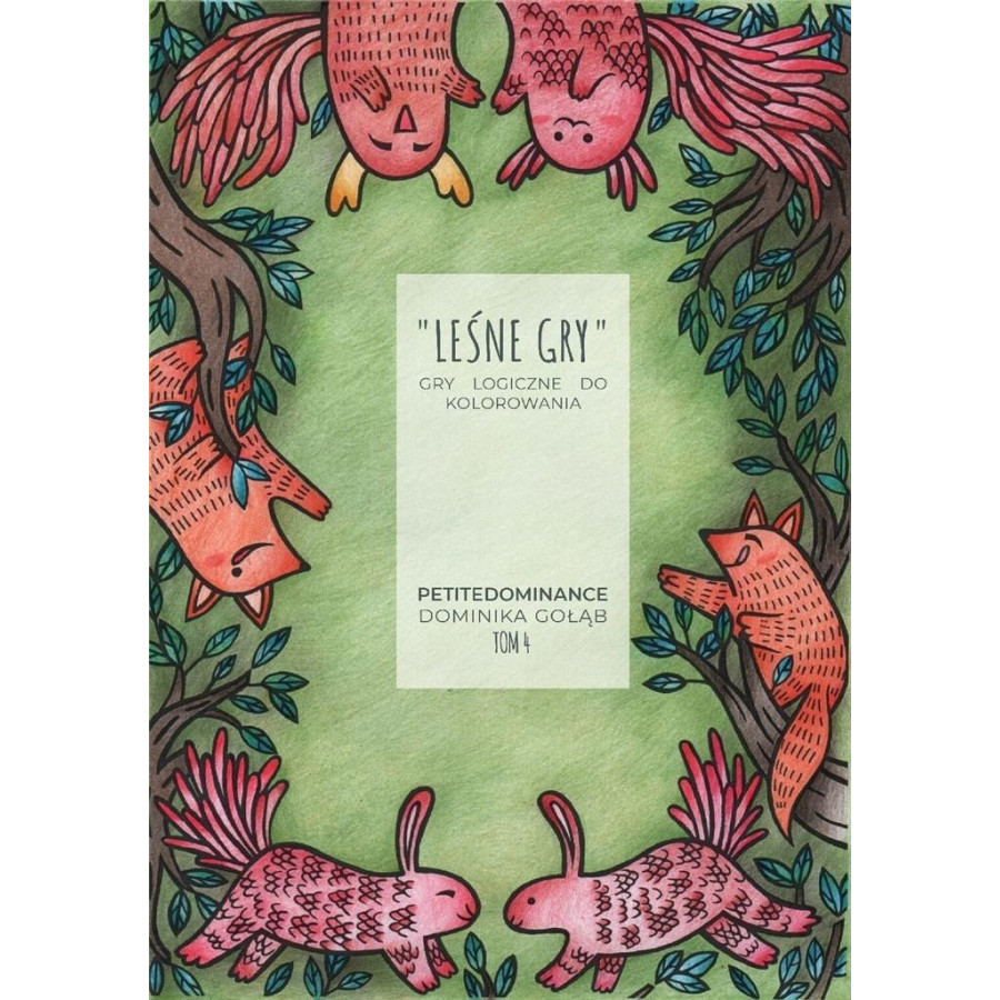 Leśne gry activity book to tom 4 z serii Leśne opowieści. Zawiera on ciekawe gry logiczne w postaci 12 ilustracji głównych w baśniowym, leśnym klimacie stworzonych ręcznie przez autorkę Dominikę Gołąb. Z tyłu każdej strony znajduje się bonusowy mini obrazek to właśnie Twoja przestrzeń do ćwiczeń i eksperymentów! Można tu wypróbować zestawienia kolorystyczne, dorysować dalszą część rysunku, bazgrać, łączyć kropki i tworzyć własne leśne historie! W tej książce znajdziecie między innymi labirynty, lekcje rysunku, anty-kolorowanki i obrazki do uzupełnienia. Indywidualny styl sprawia, że zbiór gier jest wyjątkowy i niepowtarzalny. Zapewnia to doznania artystyczne u wszystkich odbiorców, ale szczególnie istotne jest dla tych najmłodszych, u których zmysł estetyki dopiero się kształtuje. Gry w tej publikacji są w średnio zaawansowane przeznaczone raczej dla dzieci, choć mogą się przy nich bawić również dorośli. Publikację wyróżnia wysoka jakość wykonania kartki z papieru o gramaturze 200 g sklejone są tak, aby łatwo było je rozłożyć i w razie potrzeby wyrwać. Jeśli spodoba Ci się bajkowy, leśny świat Petitedominance gorąco polecam wszystkie kolorowanki z serii Leśne opowieści w formie papierowej lub cyfrowej.