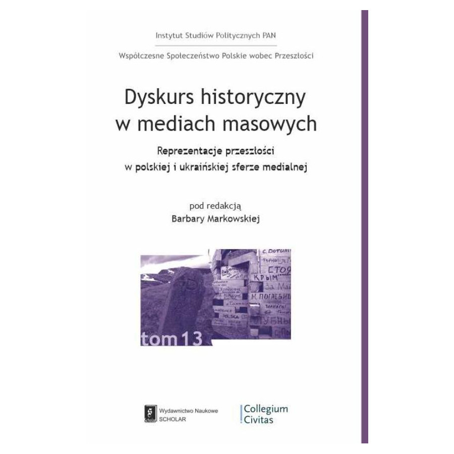 Podstawowym celem badawczym tej książki jest opis i analiza porównawcza sposobów funkcjonowania w sferze medialnej Polski i Ukrainy obrazów przeszłości i dyskursu historycznego odwołującego się do elementów historii narodowej XX w. W zawartych w niej pogłębionych studiach i analizach staramy się w różny sposób i za pomocą odmiennych metod odpowiedzieć na trzy pytania: Jakie są źródła wiedzy o przeszłości w Polsce i w Ukrainie i na ile media masowe są w stanie wytwarzać wspólnotowy obraz przeszłości? Kto i co mówi o przeszłości historycznej w mediach masowych? Jakie są formy i dominujące style, w jakich przeszłość historyczna jest przytaczana i prezentowana, w zależności od gatunku i rodzaju medium?