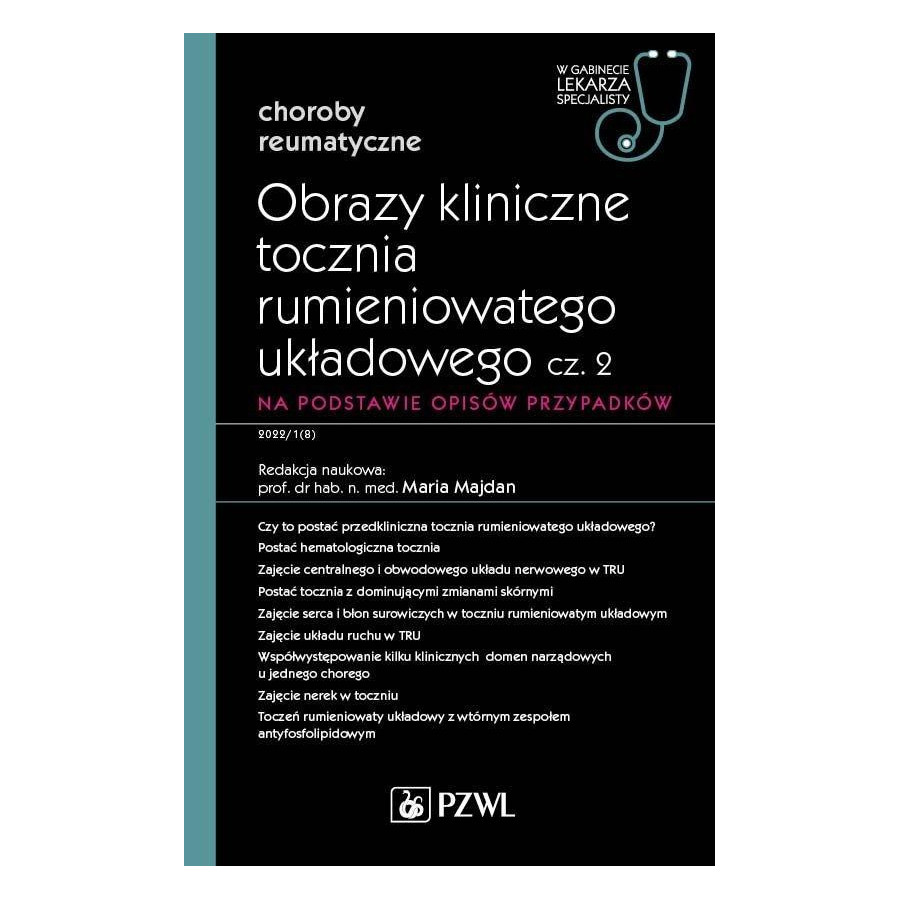 Obrazy kliniczne tocznia rumieniowatego układowego, cz. 2. Na podstawie opisów przypadków to kolejna część monografii uaktualniającą wiedzę dotyczącą tocznia rumieniowatego układowego, przygotowana pod redakcją prof. dr hab. n. med. Marii Majdan. Po omówieniu, w pierwszej część, najbardziej aktualnych zagadnień klinicznych dotyczących TRU, w drugim tomie autorzy skupili się na przedstawieniu opisów przypadków chorych na toczeń, ze szczególnym uwzględnieniem różnych, najczęściej występujących postaci klinicznych choroby. Poddano analizie, m.in. postać stawową tocznia, nerkową, hematologiczną, skórną, także postać z zajęciem układu nerwowego. Zwrócono również uwagę na zespół antyfosfolipidowy.