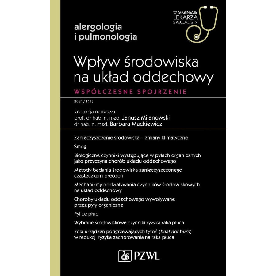 Monografia została przygotowana pod redakcją naukową prof. dr hab. n. med. Janusza Milanowskiego oraz dr hab. n. med. Barbary Mackiewicz. Opracowanie zawiera zebrane dane na temat zanieczyszczenia środowiska, metod jego badania, mechanizmów oddziaływania różnych czynników środowiskowych w układzie oddechowym człowieka. Autorzy przedstawiają choroby układu oddechowego związane z narażeniem na różnego rodzaju pyły zawieszone w otaczającym nas powietrzu. Znaczną część publikacji została poświęcona aktualnym zagadnieniom dotyczącym palenia tytoniu oraz rakotwórczego oddziaływania środowiska w kontekście wywoływania nowotworzenia w układzie oddechowym.