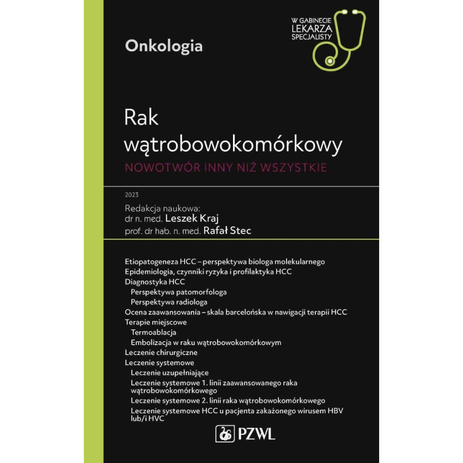 Wydanie z serii "W gabinecie lekarza specjalisty" z dziedziny onkologii poświęcone rakowi wątrobowokomórkowemu. Publikacja wyjątkowa, bo też opisywany nowotwór, jak wskazuje podtytuł, jest inny niż pozostałe pod wieloma względami i wymaga odmiennych ścieżek postępowania zarówno w diagnostyce, jak i leczeniu. Poszczególne rozdziały przygotowali znani i cenieni praktycy z poszczególnych dziedzin, szczegółowo opisując etiopatogenezę, profilaktykę oraz metody terapeutyczne stosowane u pacjentów z rakiem wątrobowokomórkowym - terapie miejscowe (termoablacja, embolizacja), leczenie chirurgiczne i wreszcie leczenie systemowe, z uwzględnieniem leczenia uzupełniającego, pierwszej i drugiej linii leczenia oraz leczenia systemowe HCC u pacjenta zakażonego wirusem HBV i/lub HCV.