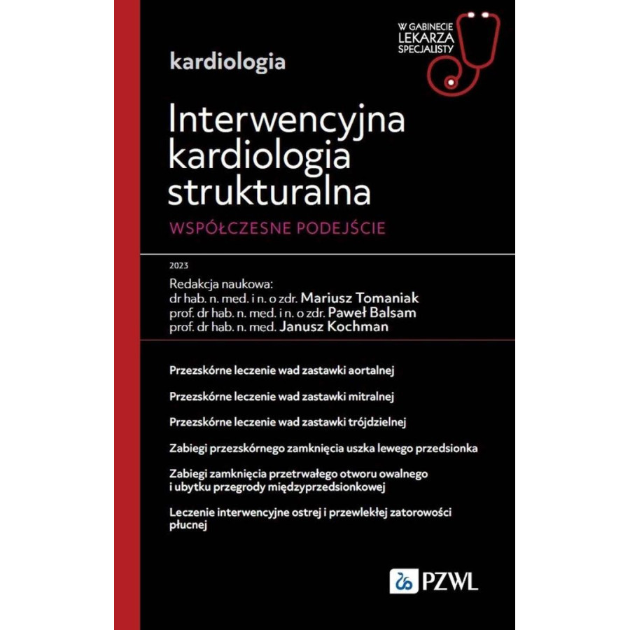 Interwencyjna kardiologia strukturalna. Współczesne podejście to kolejna publikacja z serii "W gabinecie lekarza specjalisty. Kardiologia" przygotowana pod redakcją naukową dra hab. Mariusza Tomaniaka, prof. Pawła Balsama, prof. Janusza Kochmana. Monografia stanowi podsumowanie najnowszych danych i doświadczeń klinicznych w zakresie przezskórnych metod leczenia stenozy aortalnej, niedomykalności mitralnej oraz trójdzielnej, metod zamykania uszka lewego przedsionka, przetrwałego otworu owalnego i ubytku przegrody międzyprzedsionkowej. Osobny wątek stanowi rozdział dotyczący nowych możliwości interwencyjnego leczenia zarówno ostrej, jak i przewlekłej zatorowości płucnej.