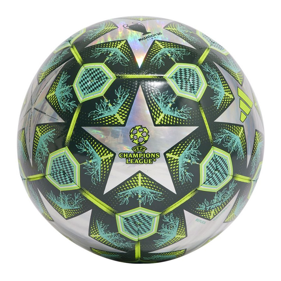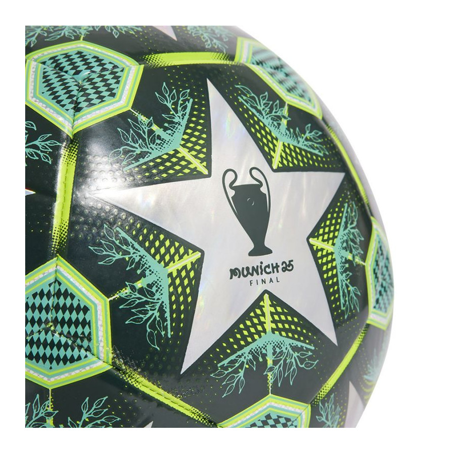 Piłka adidas Training w kolorze zieleni, typowej dla miedzianych, pokrytych patyną kopuł Monachium i dla tła z pocztówek, czerpie inspirację z designu oficjalnej piłki meczowej Ligi Mistrzów UEFA. Maszynowo szyta powłoka z TPU sprawdzi się podczas intensywnych sesji treningowych, prezentując misterne detale nawiązujące do miasta i logo turnieju. Specjalny hologramowy efekt nadaje całości wyróżniający się look.