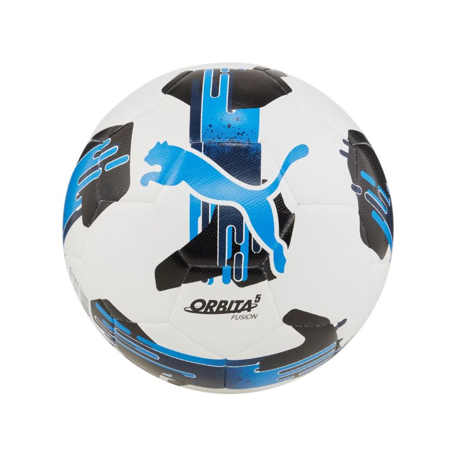 Piłka nożna Puma Orbita 5 Fusion biało-niebiesko-czarna 84331 05