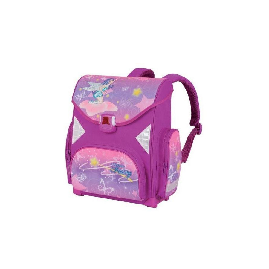 - jednokomorowy z przegródką o kasetonowej konstrukcji - zapinany na plastikowy zatrzask - z wodoodpornego materiału - nno tornistra z nóżkami - profilowane plecy z pianki pokrytej siatką - liczne elementy odblaskowe - regulowane szelki - kieszenie zewnętrzne i wewnętrzna zapinane na zamki - gumowa rączka