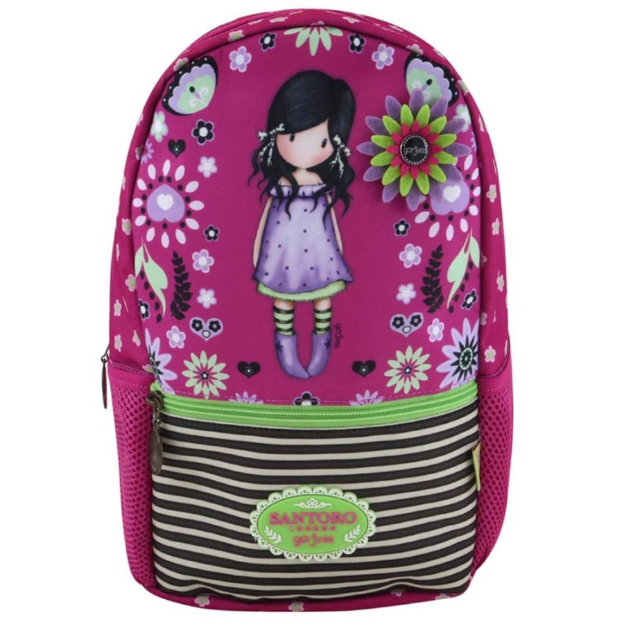 Mały Plecak - Gorjuss - You Brought Me Love. Wyjątkowo praktyczny i piękny plecak z wizerunkiem dziewczynki Gorjuss w odcieniach magenty, bzu i limonki. Ma miękkie i wygodne uchwyty do założenia na plecy z regulacją długości. Kieszenie zamykane na suwaki ozdobione medalionami w stylu antycznego mosiądzu z główką dziewczynki Gorjuss. Przestronne wnętrze ozdobione stylowymi paskami. Obszerna kieszeń przeznaczona na większe elementy zapinana na suwak. Na zewnątrz płaska kieszonka na drobiazgi. Po bokach funkcjonalne kieszonki z elastycznej siatki.