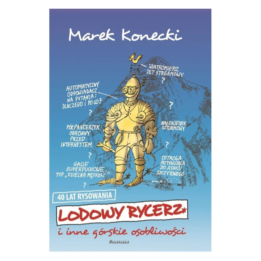 W naszym środowisku górskim działa przynajmniej kilku powszechnie znanych karykaturzystów. Każdy ma swój własny styl i punkt spojrzenia. Zazwyczaj wydają niewielkie tomiki, lub ilustrują większe książki górskie. Tym razem mamy do czynienia z czymś znacznie poważniejszym. Otóż Marek Konecki pokusił się o wybranie najbardziej reprezentatywnych rysunków ze swojej długiej, bo ponad 40-letniej kariery i opatrzył je odpowiednimi krótkimi historyjkami, które w luźny sposób nawiązują do tematu karykatury. Oprócz odgrzebanych uroczych staroci jest też spora dawka nowości, a chyba najmocniejszym punktem programu jest rozdział poświęcony ostatniej zimowej wyprawie na K2, oczywiście ukazanej w krzywym zwierciadle, choć bez nadmiernej złośliwości.