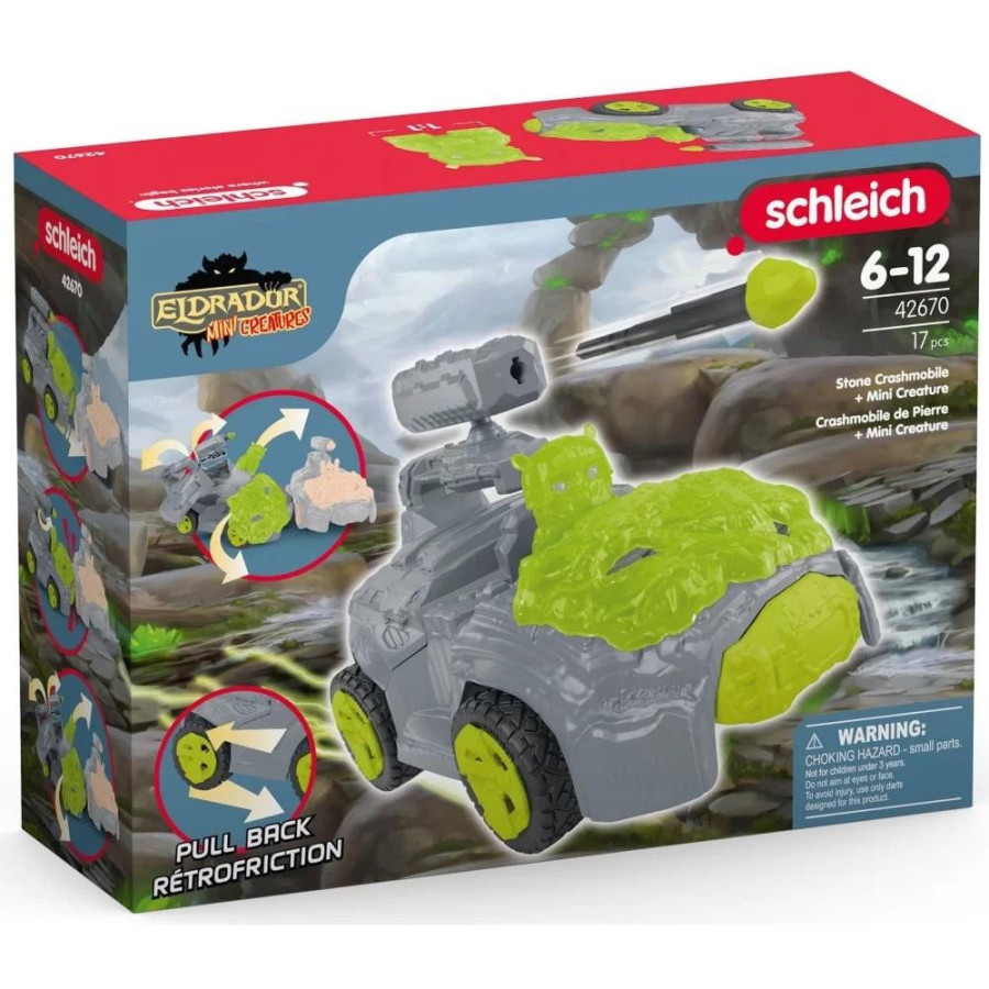 Schleich CrashMobile to świetne bojowe pojazdy, które przemierzają krainę Eldrador w poszukiwaniu draki. Wyposażone w napęd typu "pociągnij i puść" są nie do zatrzymania!
