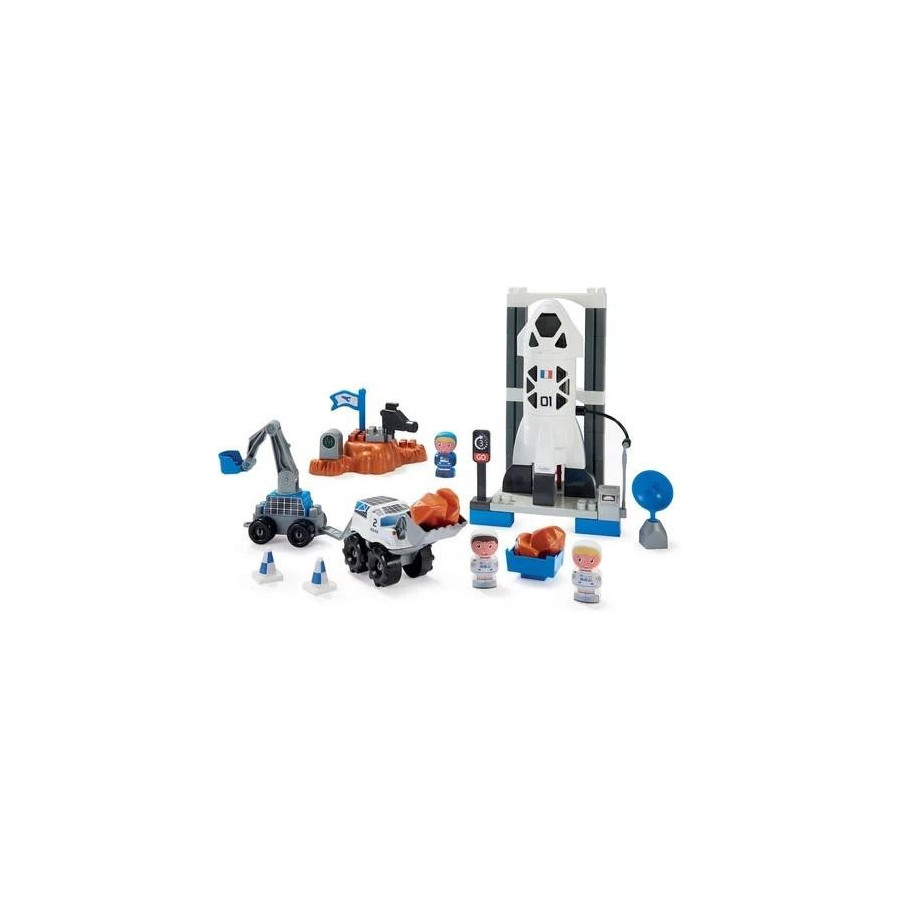 Baza kosmiczna z promem kosmicznym i platformą startową oraz łazikiem z naczepa do badania znalezisk kosmicznych. W zestawie dodatkowo 3 figurki astronautów.