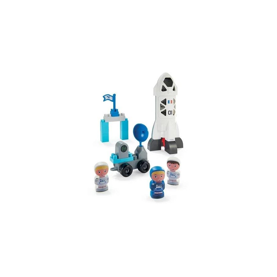 Rakieta kosmiczna z pojazdem do badania kosmicznych. W zestawie dodatkowo 3 figurki astronautów. Wyprodukowane we Francji. Wymiary: 13,5 x 13,5 x 28 cm, 18 m+