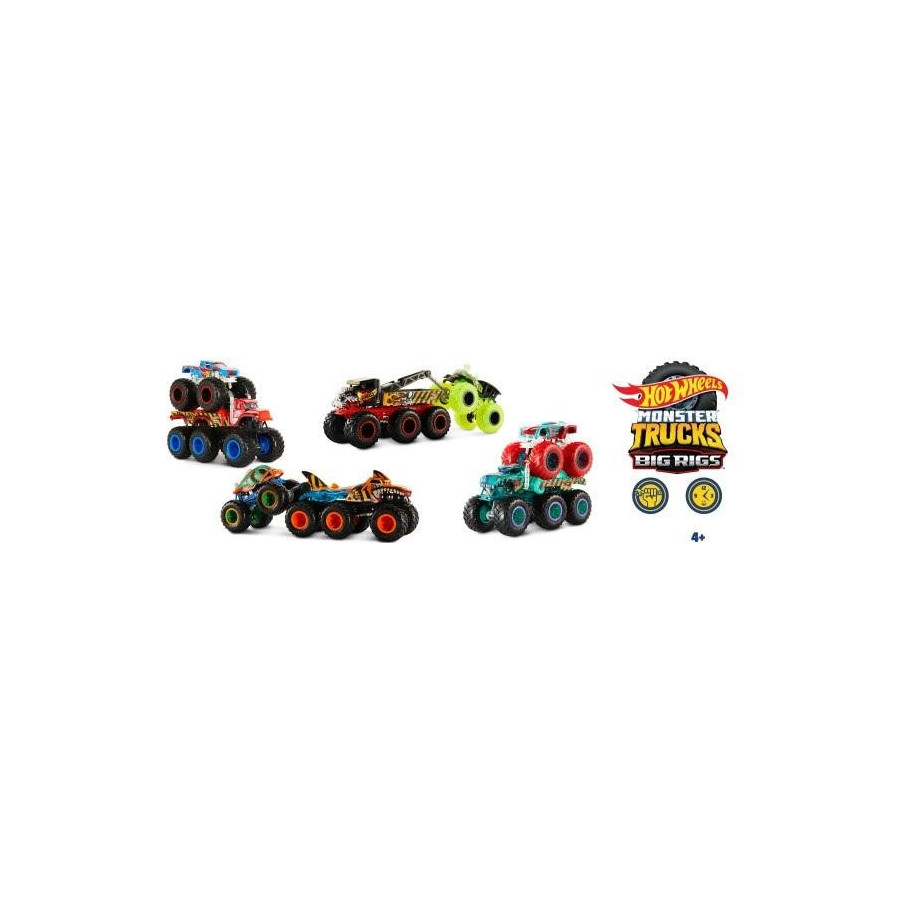 Te 6-kołowe ciężarówki Hot Wheels(R) Monster Trucks zapewnią ogromną dawkę epickich przygód. Każdy z metalowych pojazdów w skali 1:64 doskonale odzwierciedla charakter swojego imiennika ze świata Hot Wheels(R) Monster Trucks. Dzięki 6 ogromnym kołom ciężarówka może przewozić dodatkowego Monster Trucka na haku holowniczym lub na platformie. (Dodatkowe pojazdy sprzedawane oddzielnie). Pojazdy, kolory i elementy dekoracyjne mogą się różnić.