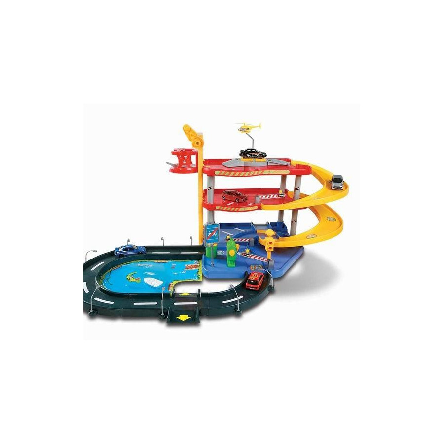 Parking Playset to oryginalny trzy-poziomowy parking kultowej firmy BBURAGO. Jest to w pełni wyposażony plac zabaw dla małego rajdowca. Wielopoziomowy parking, myjnia samochodowa, winda, sygnalizatory świetlne, szlabany, dodatkowa droga z oświetleniem ulicznym - to wszystko gwarantuje wyśmienitą, wielogodzinną oraz bezpieczną zabawę Twojego dziecka. Całość z wysokiej jakości tworzywa, wykonana z dbałością o każdy najdrobniejszy szczegół. Zestaw zawiera dwa oryginalne metalowe modele samochodów Bburago w skali 1:43 z kolecji Street Fire.