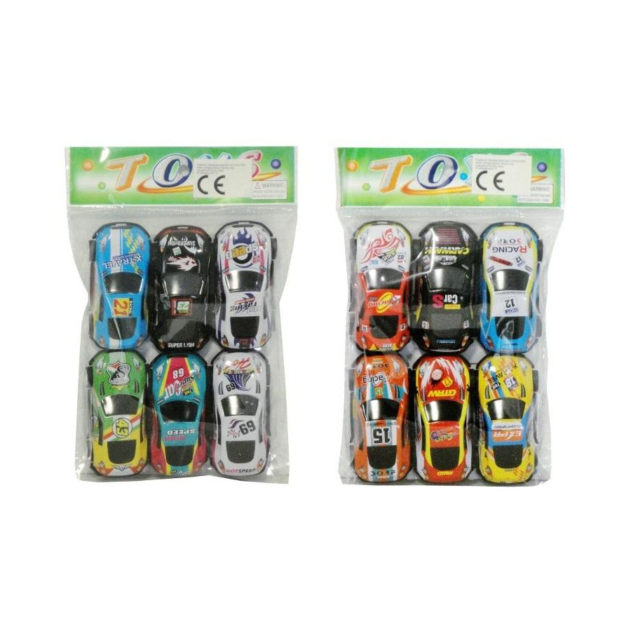 Zestaw 6 kolorowych plastikowych autek. W zestawie znajdują się autka sportowe z napędem friction. Przydatne będą podczas zabawy w wyścigi. Produkt występuje w kilku wersjach kolorystycznych, wybierany losowo. Cena dotyczy jednej sztuki. Zabawka dla dzieci od 3 lat. Produkt zapakowany w przezroczysty worek