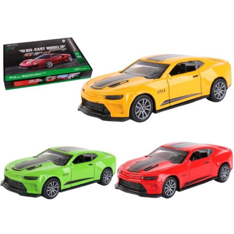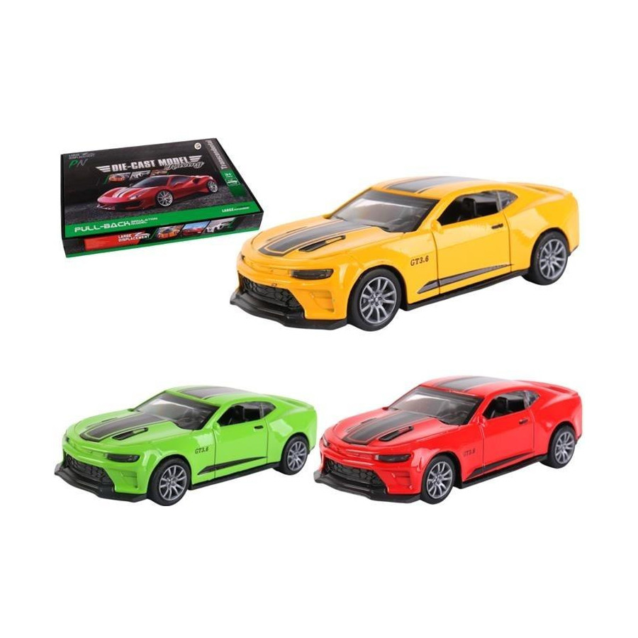 Sportowy model metalowego samochodu w skali 1:36 to idealna propozycja dla fanów dynamicznych pojazdów. Klasyczny design inspirowany muscle carami, agresywna linia nadwozia i charakterystyczne sportowe malowanie sprawiają, że model wyróżnia się na torze wyścigowym. Wykonany z trwałych materiałów, posiada napęd pull-back, który umożliwia szybkie rozpędzenie auta.