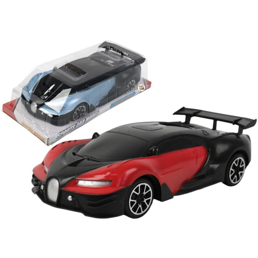 Model sportowego samochodu osobowego w wersji zabawkowej z napędem typu friction drive (naciąg sprężynowy przez rozpędzenie kół). Produkt wykonany z tworzywa sztucznego z elementami imitującymi detale aerodynamiczne. Samochód występuje w asortymencie dwóch wersji kolorystycznych: czarno-niebieskiej oraz czarno-czerwonej. Konstrukcja o dynamicznej linii nadwozia wzorowana jest na realnych pojazdach typu hypercar. Produkt przeznaczony do zabawy dla dzieci powyżej 3. roku życia.