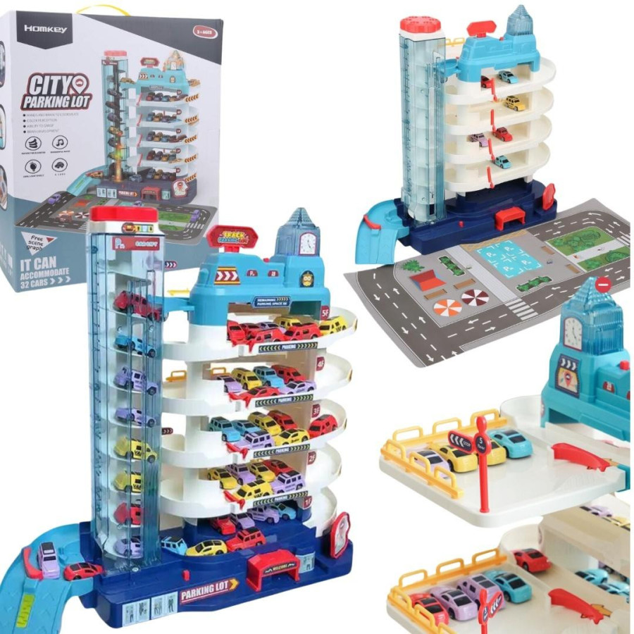 Zestaw prezentuje pięciopiętrowy parking z windą, która dodaje dynamicznego elementu do zabawy. Kolorowe poziomy zachęcają do eksploracji, a winda ułatwia przemieszczanie się między piętrami. W zestawie znajduje się również 8 kolorowych aut, co pozwala na tworzenie niekończących się scenariuszy. Różnorodność pojazdów stymuluje wyobraźnię dziecka, a także rozwija pasję do motoryzacji. Dodatkowe elementy, takie jak mata z wzorem ulicy dodają jeszcze więcej możliwości do zabawy.
