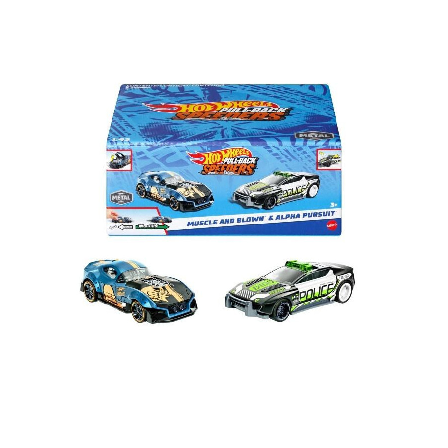 Postaw na rajdowe starcia na pełnych obrotach z tym zestawem dwóch pojazdów Hot Wheels(R) Pull-Back Speeders. Te większe metalowe pojazdy Hot Wheels(R) w skali 1:43 z napędem pull-back wyróżniają się autentycznymi dekoracjami. Każdy samochodzik ma ruchomy element, taki jak silnik albo otwierane drzwi, maska lub bagażnik. Możliwości wymyślania opowieści są nieskończone dzieci i dorośli kolekcjonerzy będą chcieli zebrać wszystkie pojazdy.