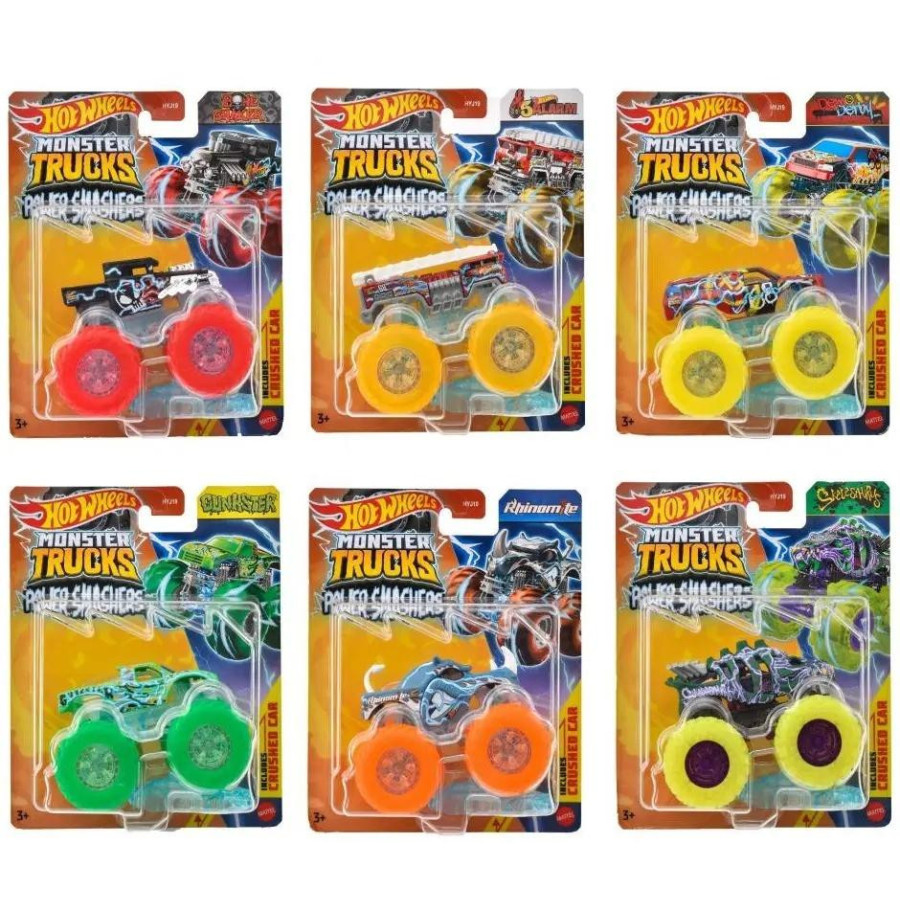 Rób demolkę i szalej za kółkiem z pojazdem Hot Wheels(R) Monster Trucks Power Smashers! Każdy z pojazdów w skali 1:64 z dekoracjami w stylu Power Smashers nadaje polotu i kolorów zabawie w demolkę. Możesz wybierać ulubione Monster Trucki spośród bohaterów i złoczyńców lub zebrać je wszystkie, aby mieć do dyspozycji całą flotę legend Power Smashers zupełnie jak w serialu Hot Wheels Monster Trucks w YouTube.