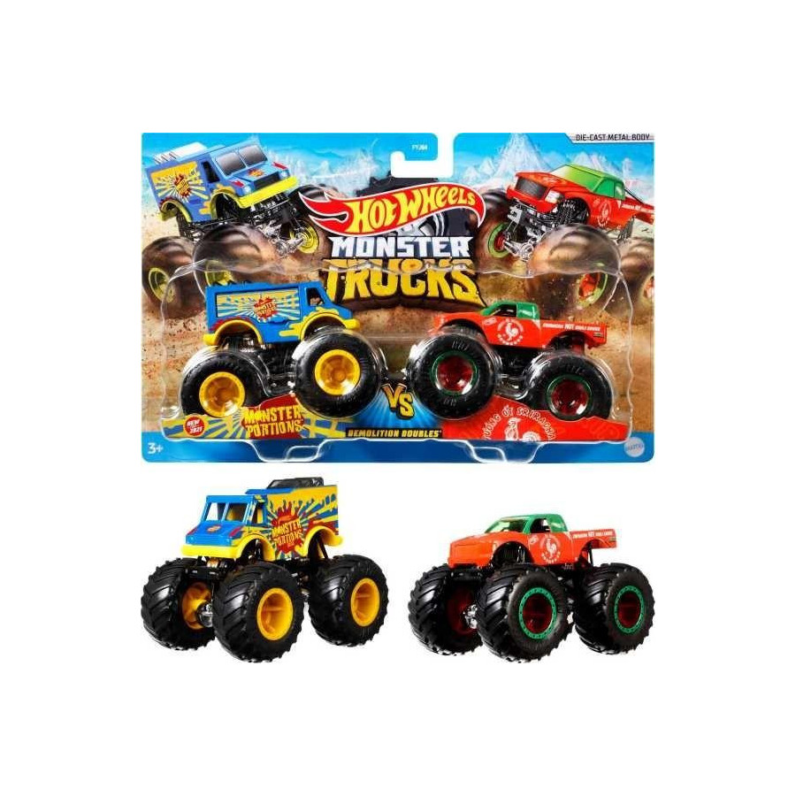 Pojazdy Hot Wheels(R) Monster Trucks wykonane w skali 1:64 teraz dostępne w dwupaku stają do walki, by zmiażdżyć swoich arcywrogów! Te Monster Trucki są gotowe do walki i przeprowadzania epickich ataków! Dobrane w pary mogą brać udział w starciach między swoimi autami o OGROMNYCH kołach! Każde opakowanie zawiera dwóch przeciwników, a także informacje o statystykach, nazwie, typie pojazdu, jego mocy i unikalnym ataku. Wszystko po to, by odgrywanie przygód było jeszcze ciekawsze!