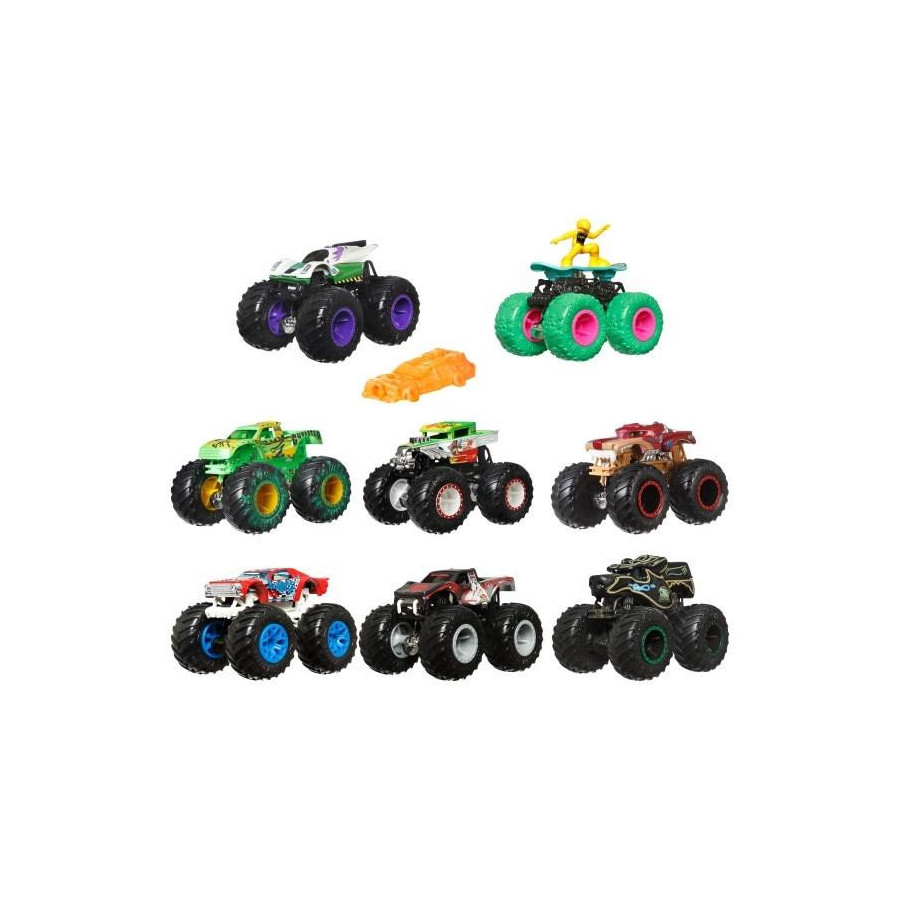 Metalowe pojazdy Hot Wheels(R) Monster Trucks w skali 1:64 to najgroźniejsze pojazdy stworzone z myślą o rywalizacji i całkowitej demolce! Stają naprzeciwko siebie gotowe do pojedynku na swoich OGROMNYCH kołach! Do każdego auta dołączono kolekcjonerskie koło, a opakowanie zawiera informacje dotyczące danego pojazdu, obejmujące między innymi jego nazwę, typ i unikalny atak, aby odgrywanie przygód było jeszcze ciekawsze!